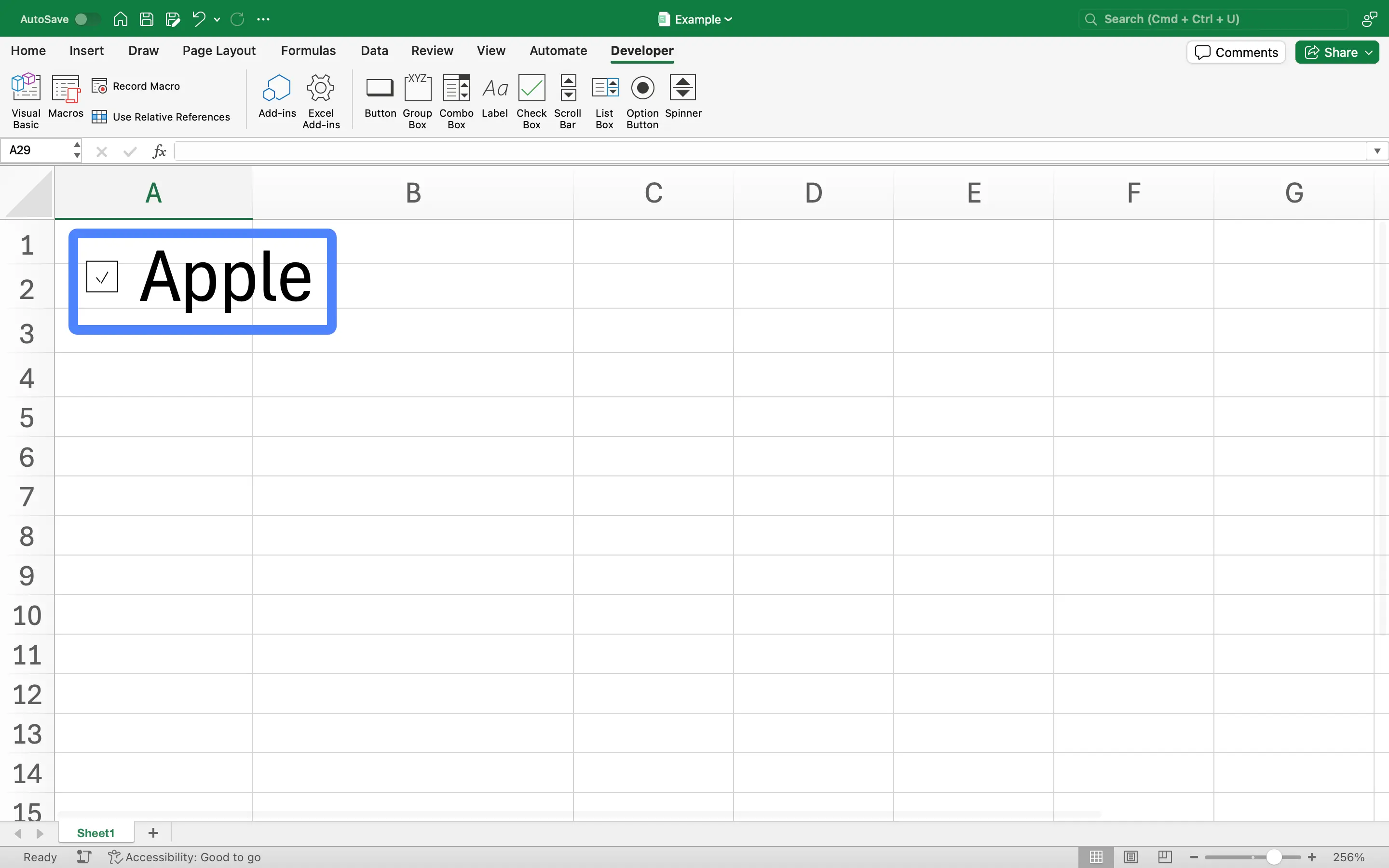 Step 2: Insert Checkbox